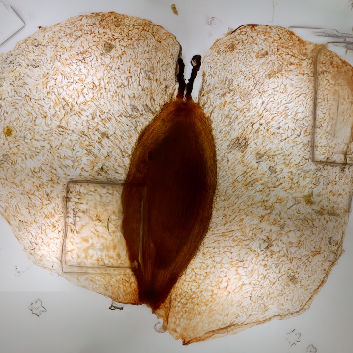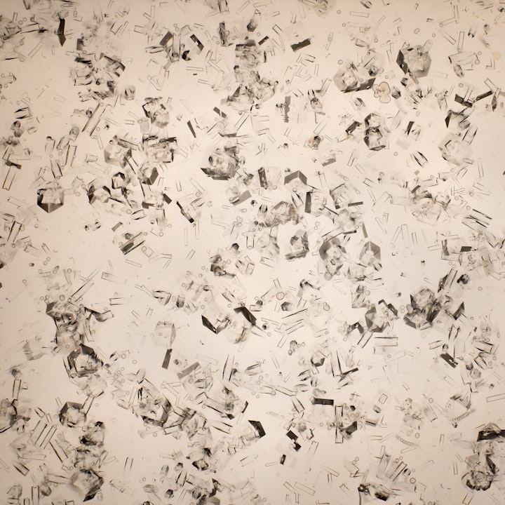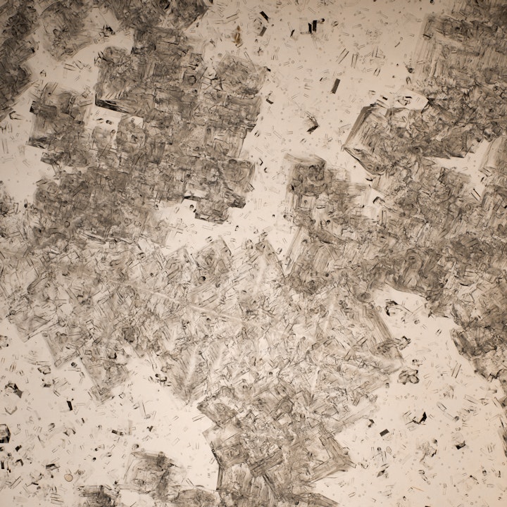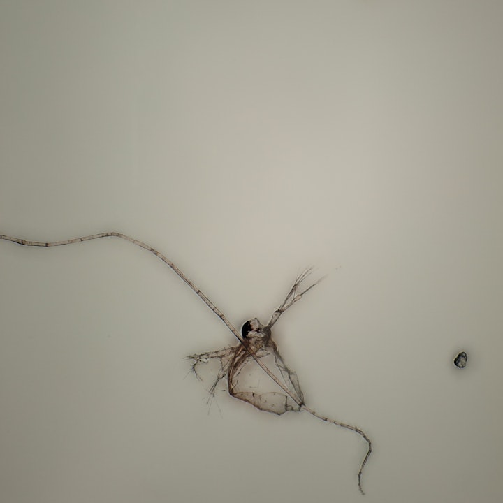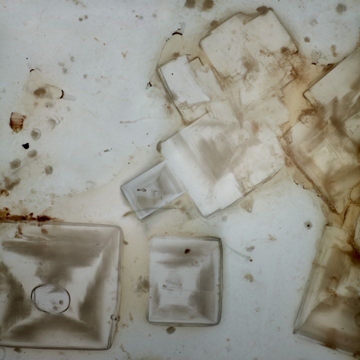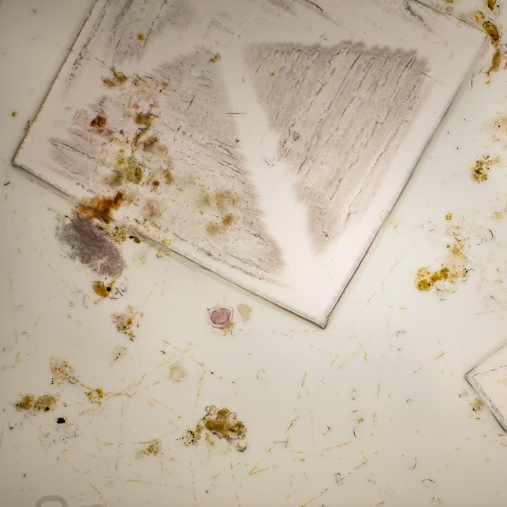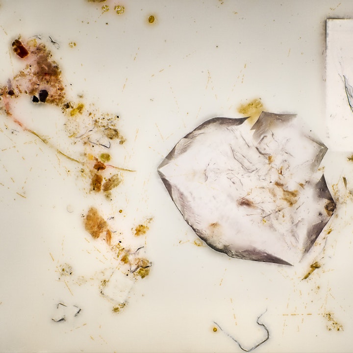Water is a peculiar molecule with properties like no other substance. Equally fascinating is the diverse and abundant lifeforms as phytoplankton, that we can’t see with the naked eye. Like a parallel universe within our own. These things made me curious about the microscopic world of water. The images in this series shows the remains of solid material left when the seawater evaporated. A mixture of salt crystals, organic matter and in some of the images, plastic fibers.